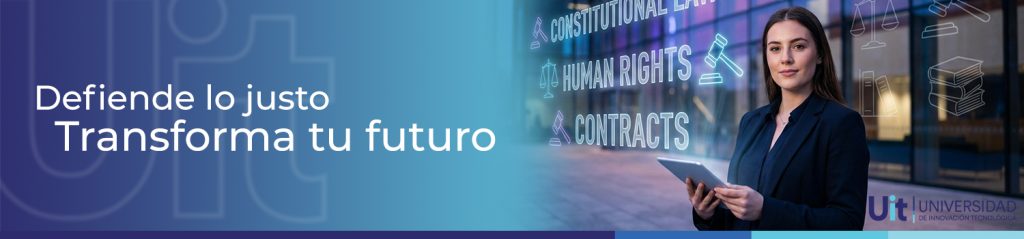La Licenciatura en Derecho en la UIT está pensada para quienes quieren formarse como profesionales capaces de interpretar y aplicar el marco legal con criterio, ética y enfoque práctico, ya sea para defender los derechos de las personas, participar en la resolución de conflictos o brindar asesoría jurídica a organizaciones y empresas. Si te interesa la justicia, los derechos humanos y el orden legal, esta carrera te prepara para convertirte en un abogado con bases sólidas y visión profesional para desempeñarte en distintas áreas del derecho.